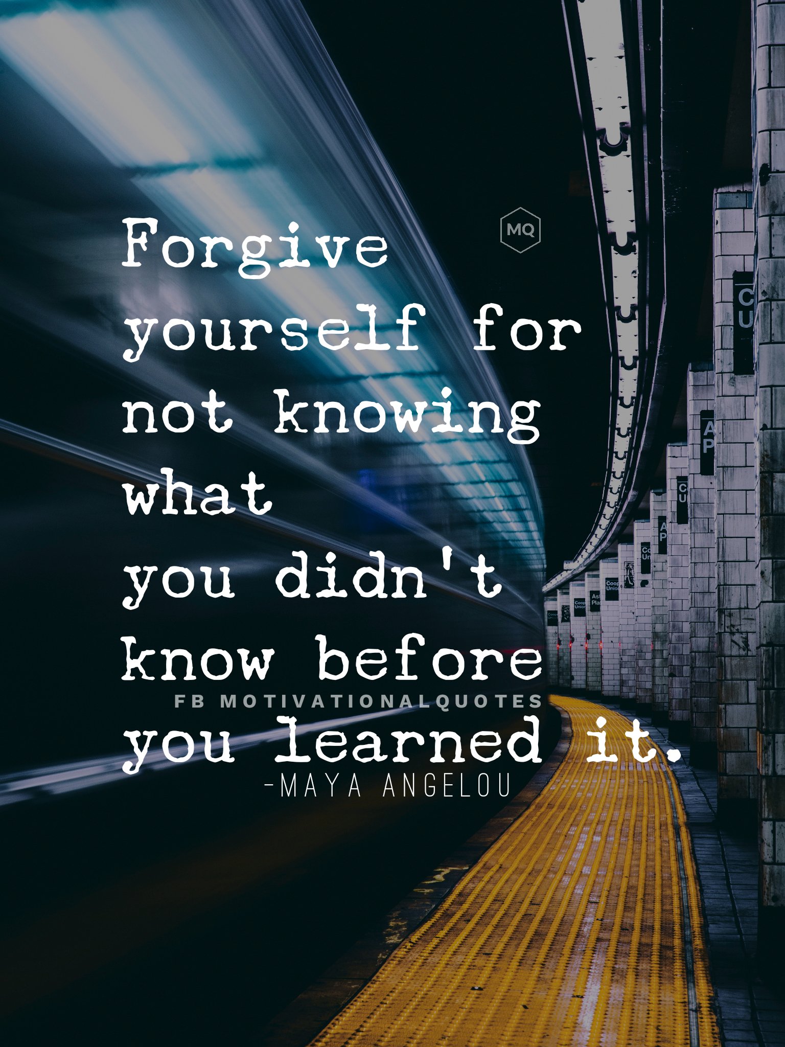 This quote is about anxiety forgiving failure forgive yourself may god knows right thing trying. Maya Angelou Forgive yourself for not knowing what you didnt know before you learned it. As the world mourns her death the 86-year-olds legacy lives on.